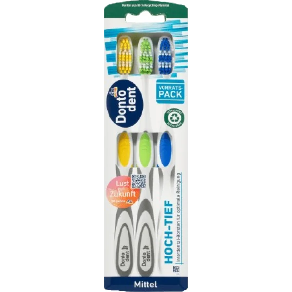 Prenez soin de votre sourire avec la brosse à dents Dontodent Hoch-Tief, conçue pour un nettoyage efficace et en profondeur.