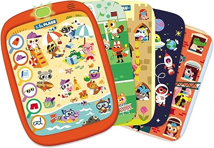 JEU ELECTRONIQUE TACTILE SANS STYLO L’enfant joue directement avec ses doigts : il sélectionne une question avec un doigt et cherche la réponse avec l’autre sur la grande image. Magique, la lumière verte ou rouge indique la bonne ou mauvaise réponse !