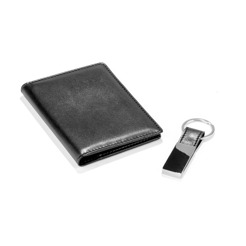 La trousse CAMERON est en cuir écologique. Je plie du porte-clés oraz etui pour les documents, qui sont emballés dans une boîte en papier. La couleur de la boîte est la même que celle de l’intérieur du coffret, ce qui en fait un tout cohérent.