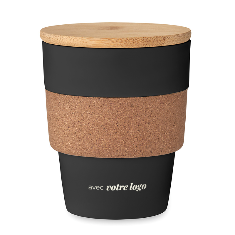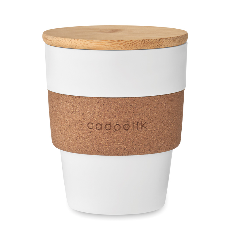 Ce gobelet publicitaire arbore des détails valorisants pour accompagner votre communication responsable. Un couvercle en bambou, une bague de protection en liège sur une simple paroi en PP, et voilà votre gobelet personnalisable de 300 mL prêt pour la pause-café de vos collaborateurs, sensibles à la cause environnementale. Largement visible près de la machine à café, en salle de pause ou de réunion, ce gobelet personnalisable par gravure laser ou tampographie 4 couleurs renforcera le positionnement engagé de votre entreprise. Il est décliné en 3 coloris, beige, blanc et noir. Demandez votre devis personnalisé auprès de l’équipe Cadoétik par mail ou par téléphone.