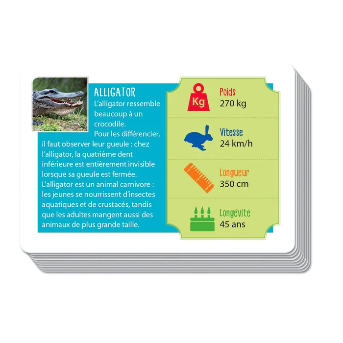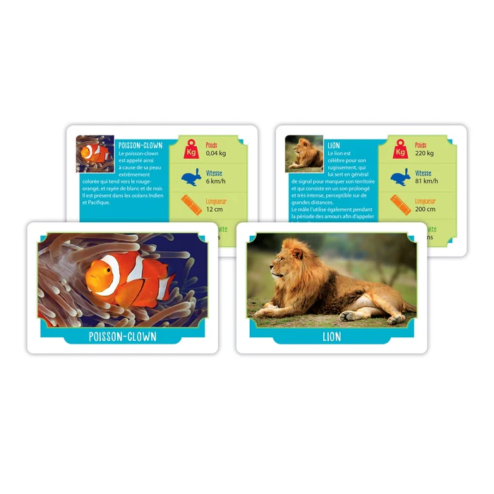 Contient 50 cartes avec des images d’animaux et leurs caractéristiques.