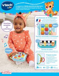 En manipulant cette tablette, votre tout-petit découvre les formes, les couleurs et les animaux tout en stimulant ses sens. Les touches souples s’illuminent !