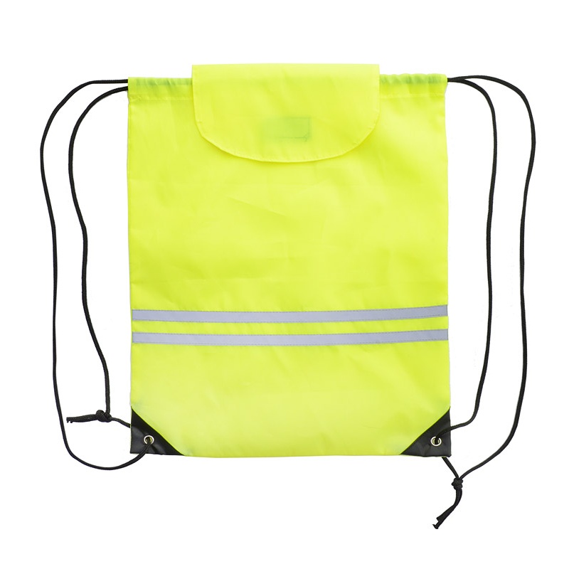 Sac réfléchissant en polyester. Il est doté d’un cordon de serrage désormais fermé par velcro permettant de fermer le sac rapidement.