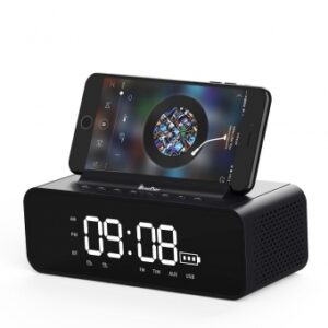 OneDer V06 Double Réveil Multifonctionnel Affichage LED Haut-Parleur Sans Fil Bluetooth